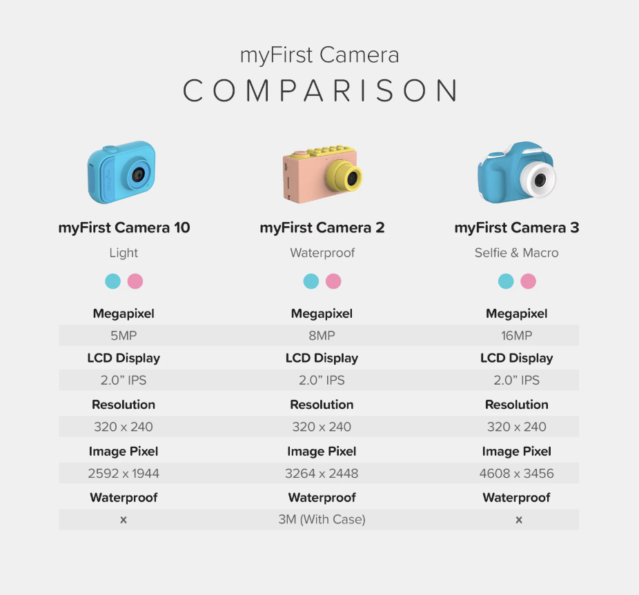 myFirst Camera 2 is the successor to myFirst Camera which now comes with a waterproof case. With its long-lasting battery and compact size, your child will experience the joy and fun of taking pictures anytime, anywhere!
